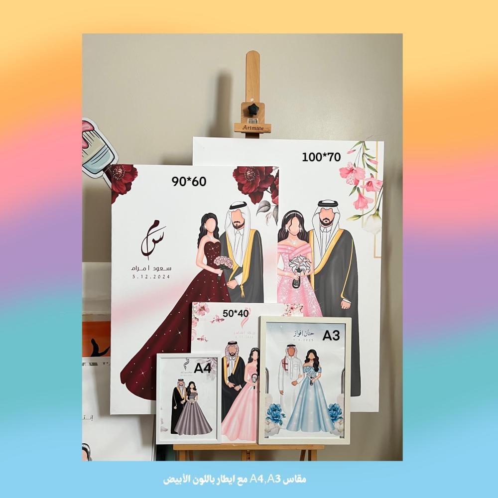 نسعد بتنفيذ ورسم اطلالتك مع العريس بدون ملامح